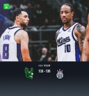 第四节雄鹿库兹马拿下16分,国王萨博尼斯拿下7分,最终雄鹿133-135不敌国王